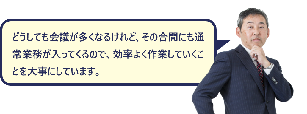 朗らかな人柄で部下からの信頼も厚い支店長。モットーは「月曜日の朝に『行きたくないな』と感じる会社はつくらない!」こと。自分のことを支店長ではなく名字で呼んでもらうようにしたり、支店全員が笑顔で楽しく仕事ができる環境をつくることで、支店メンバーとコミュニケーションを重ねている。